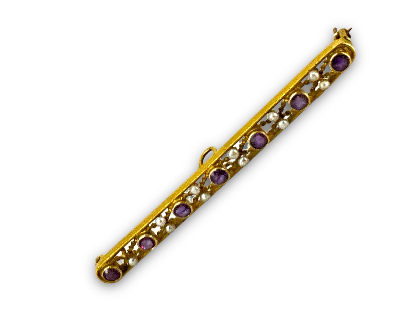 Vintage 14k Gold Bar Pin Brooch Yellow Gold Amethyst Seed Pearl 1/2" OG464Eco Estate Jewelry4.3(3)$250(1 bid)9 hrs Left