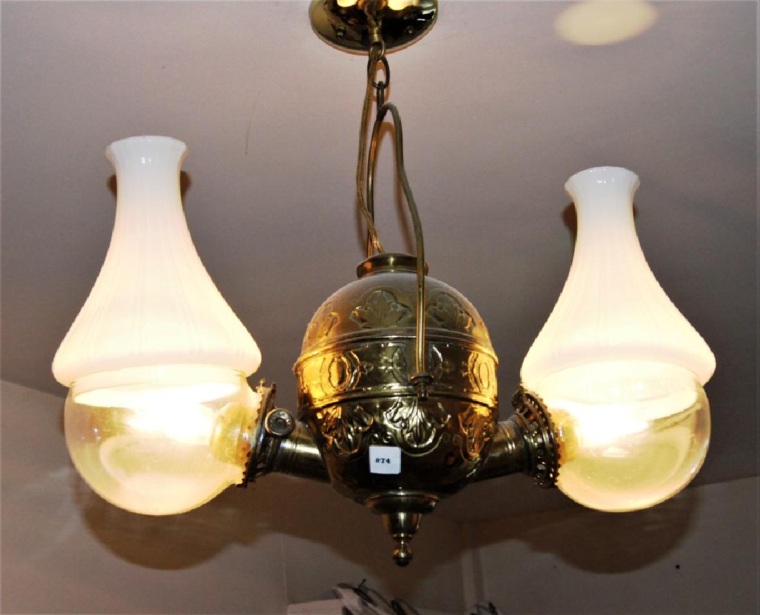 Victorian hanging double angle lamp, solid brass,
