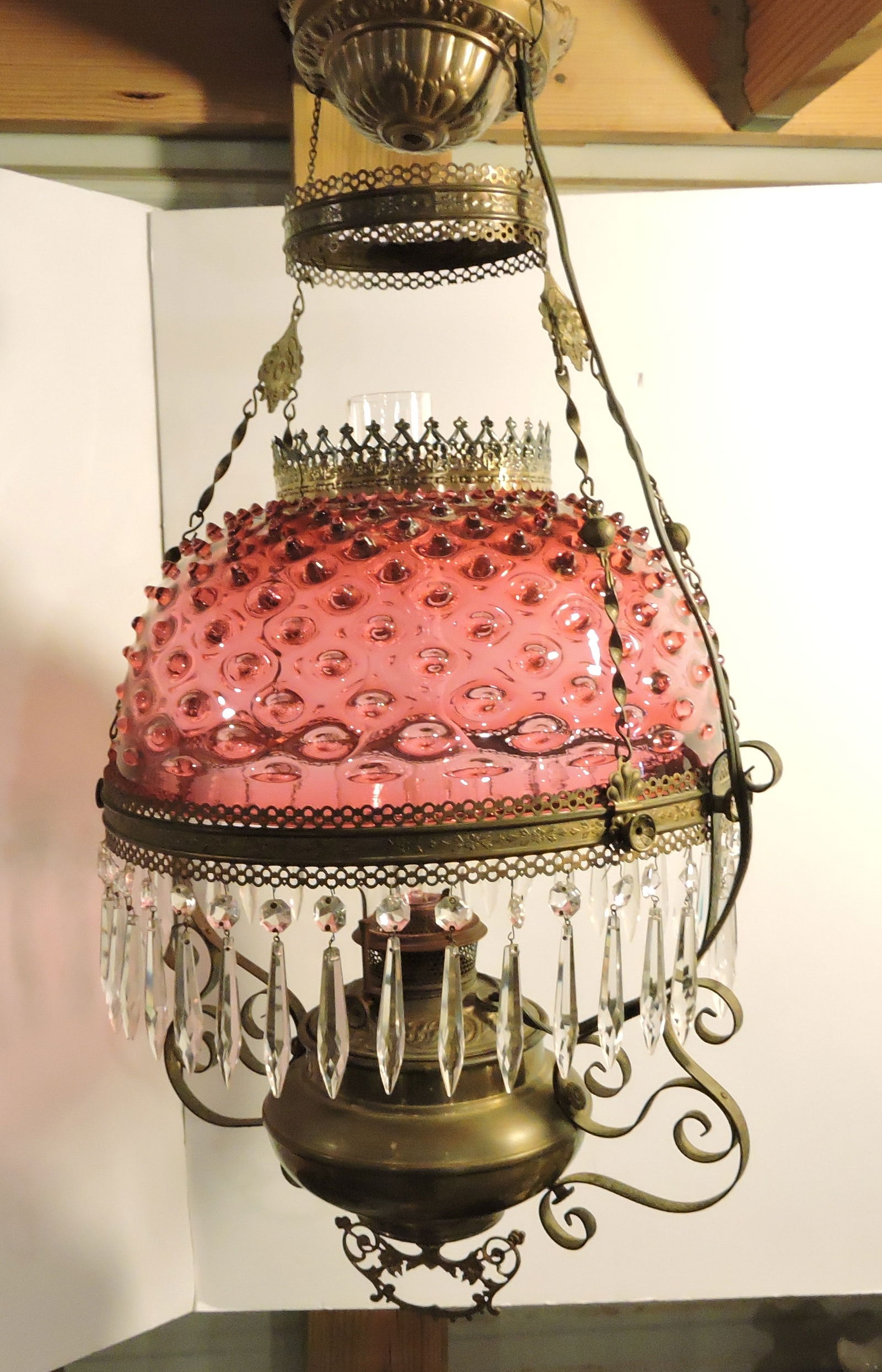 Victorian Era Cranberry Hobnail Glass Shade Brass Hanging Chandelier w/ Crystal PrismsAtlee Raber Auctions4.6(533)$10(1 bid)Mar 16, 2026