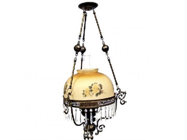 VICTORIAN HANGING LIBRARY LAMP CRYSTAL PRISMS