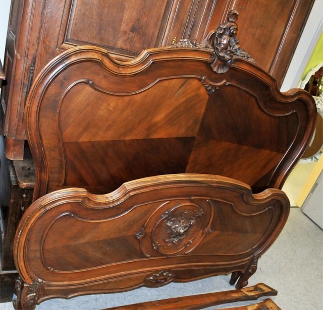 SoldNice Victorian mahogany French style bed with brass ormolu. Extends to fit a queen size mattress, inNice Victorian mahogany French style bed with brass ormolu. Extends to fit a queen size mattress, in nice condition. Missing a few pieces of brass and 1 small finial.See Sold Price