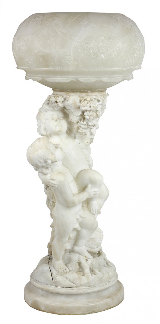 Italian Alabaster Art Deco Lamp Sculpted by Gaspar Mascagni