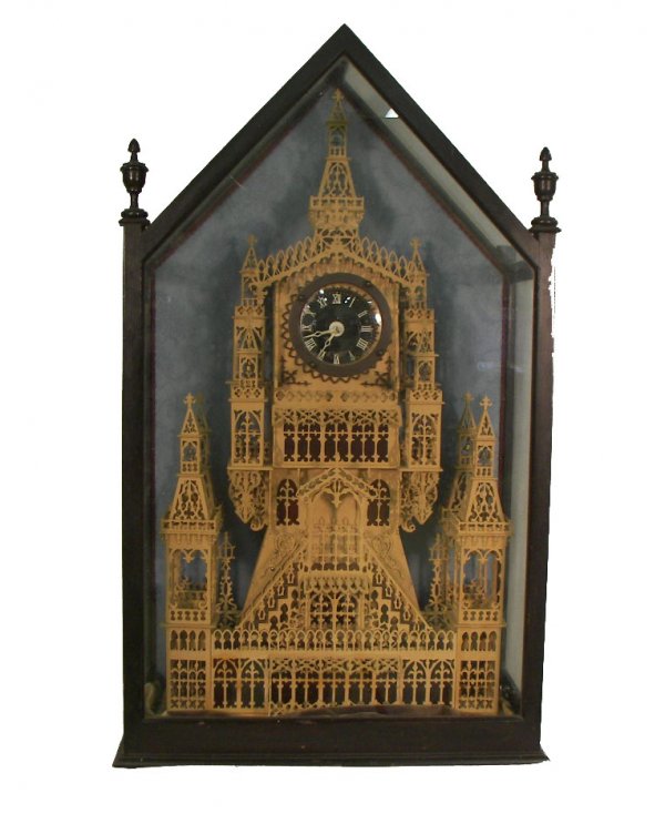 Victorian model church w/skeleton clock in case