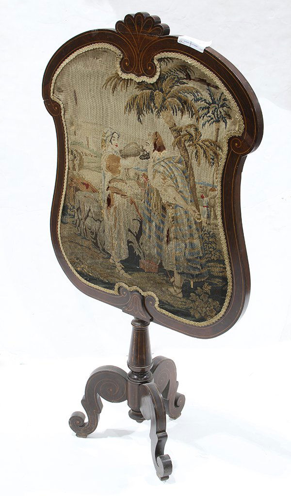 A Wood-Sculptured Fire Screen with Floral Embroidery, Louis XV style, 19th C.6 days LeftEarly 19th C Mahogany Fire Screen Petit Point Shield 59 1/2" HFeb 07, 2026French Victorian Needlepoint Tapestry Panel4 days LeftGeorgian-style Mahogany Pole Screen429 Lots AwayRenaissance Revival Figural Carved Needlepoint Fireplace Screen C19007 days LeftFEDERAL TABERNACLE MIRROR WITH EGLOMISE PANEL 19th Century Height 40.5". Width 21". Depth 3".Feb 18, 202619th Century Federal Trumeau Mirror Flame Mahogany with Satinwood InlayFeb 07, 2026A FRENCH ORMOLU-MOUNTED TULIPWOOD, FRUITWOOD, BURR BIRCH AND MARQUETRY TABLE A ECRIRE 19TH CENTURYFeb 18, 2026Antique George III Needlepoint Ottoman C1880s Quality Upholstery18 hrs LeftLarge Vintage Framed Needlepoint Textile French Romanticism 34 x 42495 Lots AwayVictorian Mother-of-Pearl Inlaid Lacquer TableFeb 10, 202619th Cent. Rococo Ormolu Bronze Quilted Fireplace ScreenFeb 17, 2026Vintage Chippendale Mahogany Tilt-Top Table C193019 hrs LeftEnglish Federal-style Mahogany Pole Screen428 Lots AwayA FRENCH ORMOLU-MOUNTED BOIS SATINE AND MARQUETRY SIDE TABLE 19TH CENTURYFeb 18, 2026Late 20th Century Friedman Brothers Mahogany Beveled Mirror With Gold Gilt Accents and Urn