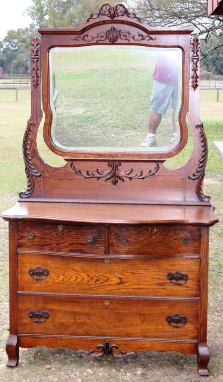 VICTORIAN OAK CHEST WITH MIRROR