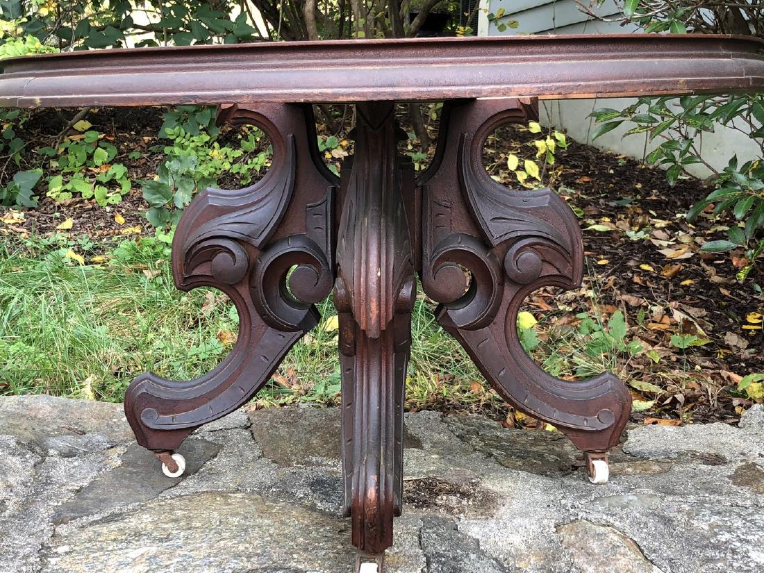 SoldVictorian oval black walnut marble top tableVictorian oval black walnut marble top table parlor lamp table 29" x 21" x 17"See Sold Price