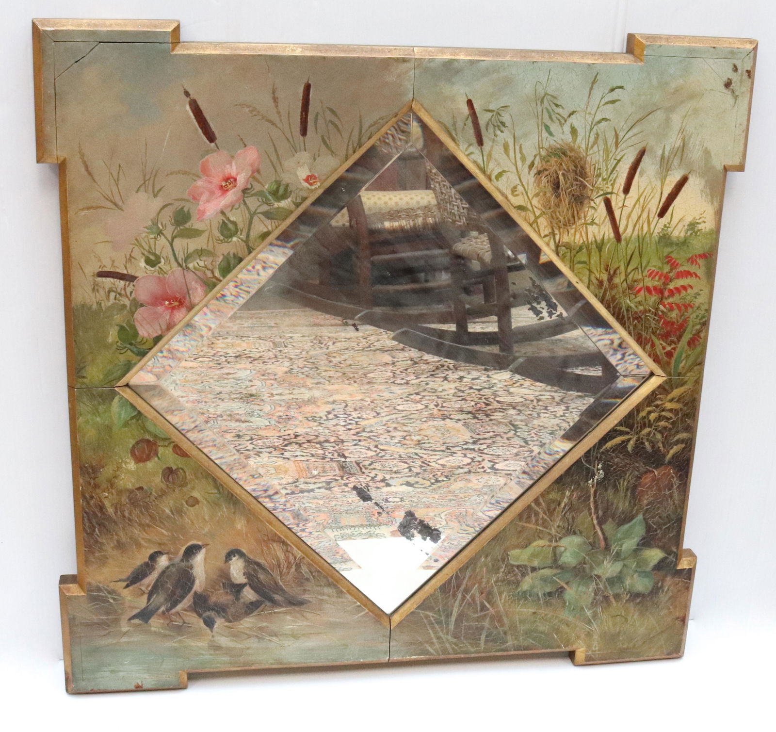 Antique 2 panel mirror with eglomise top showing primitive scene with house , gilt and black frame,Hudson Valley Auctioneers LLC Beacon NY4.8(618)$506 days Left