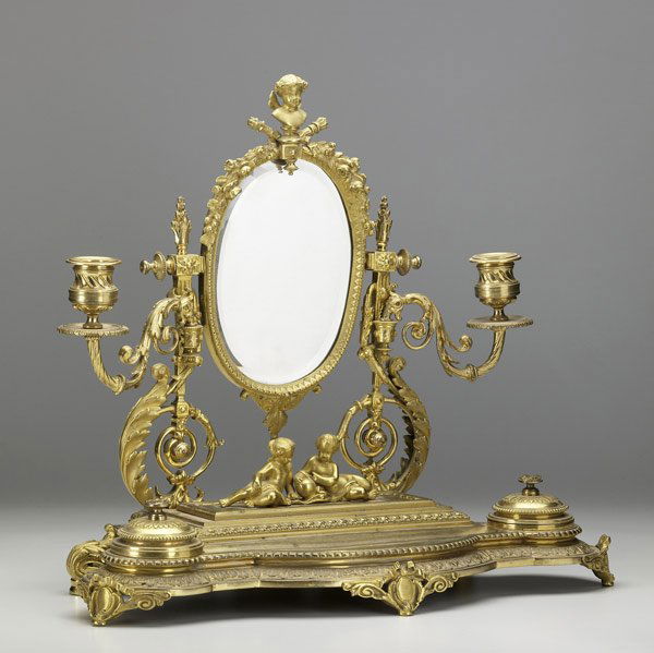 Ornate Gilt Metal Girandole Candle HoldersAntique Victorian Table Mirror/Candle Holder19th c. English Brass Inkwell & Writing Desk Set c.188019th C. Gilt Bronze Table Mirror Signed By F.Barbedienne4 days LeftVictorian silverplate inkstand3 days LeftLouis XV Style Gilt Bronze & Sevres Mounted Ladies Desk5 days LeftLarge 16" Art Nouveau Gilt Bronze Cherub Beveled MirrorFeb 26, 2026Magnificent F. Linke Kingwood & Gilt Bronze Desk, 19th C.4 days LeftFrench Popon Gilt Bronze Figural Table Vanity Mirror Putti Stone Base circa 1900Mar 15, 2026Pair French Gilt Bronze 4 Light Candelabras Cherubs circa 1880Mar 15, 202619th Century French Francois Linke Bronze Mounted Dressing Mirror Table, Signed5 days LeftLarge 17" Antique French Gilt Metal Cherub Mantel ClockFeb 26, 2026(2) CONTINENTAL GILT BRASS INKWELLS, LATE 19TH CENTURY4 days LeftPair of Large 19th C. French Gilt Bronze Figural Candelabras4 days LeftArt Nouveau inkwell, European School, circa 1900Feb 25, 202619th C. F. Linke Style French Figural Vanity Table5 days Left