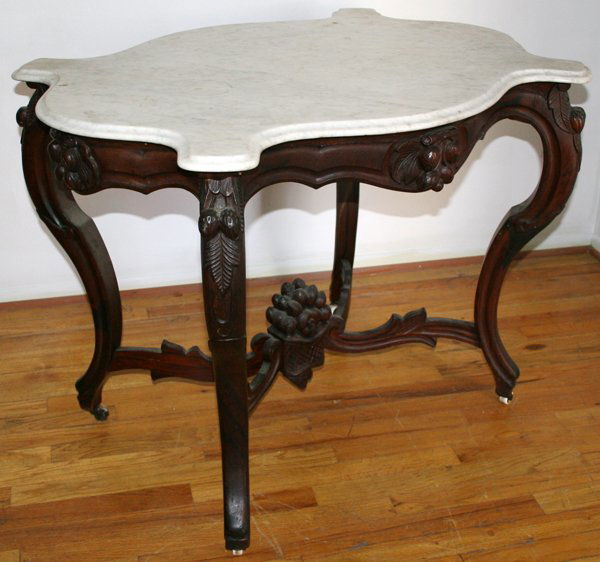 VICTORIAN PARLOR TABLE, MARBLE TOP, C. 1890