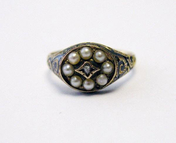 ANTIQUE GEORGIAN GOLD BLACK ENAMEL PEARL HALO LOCKET FRONT MOURNING RING AFBanks Jewellery Auctions4.3(6)£50
