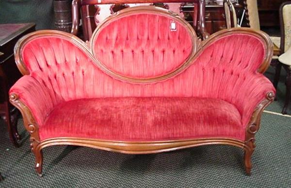 Victorian Red Velvet Medallion Back Sofa