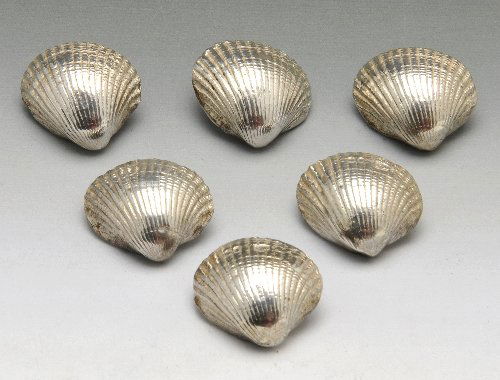 Victorian set of six silver button modelled as shells.