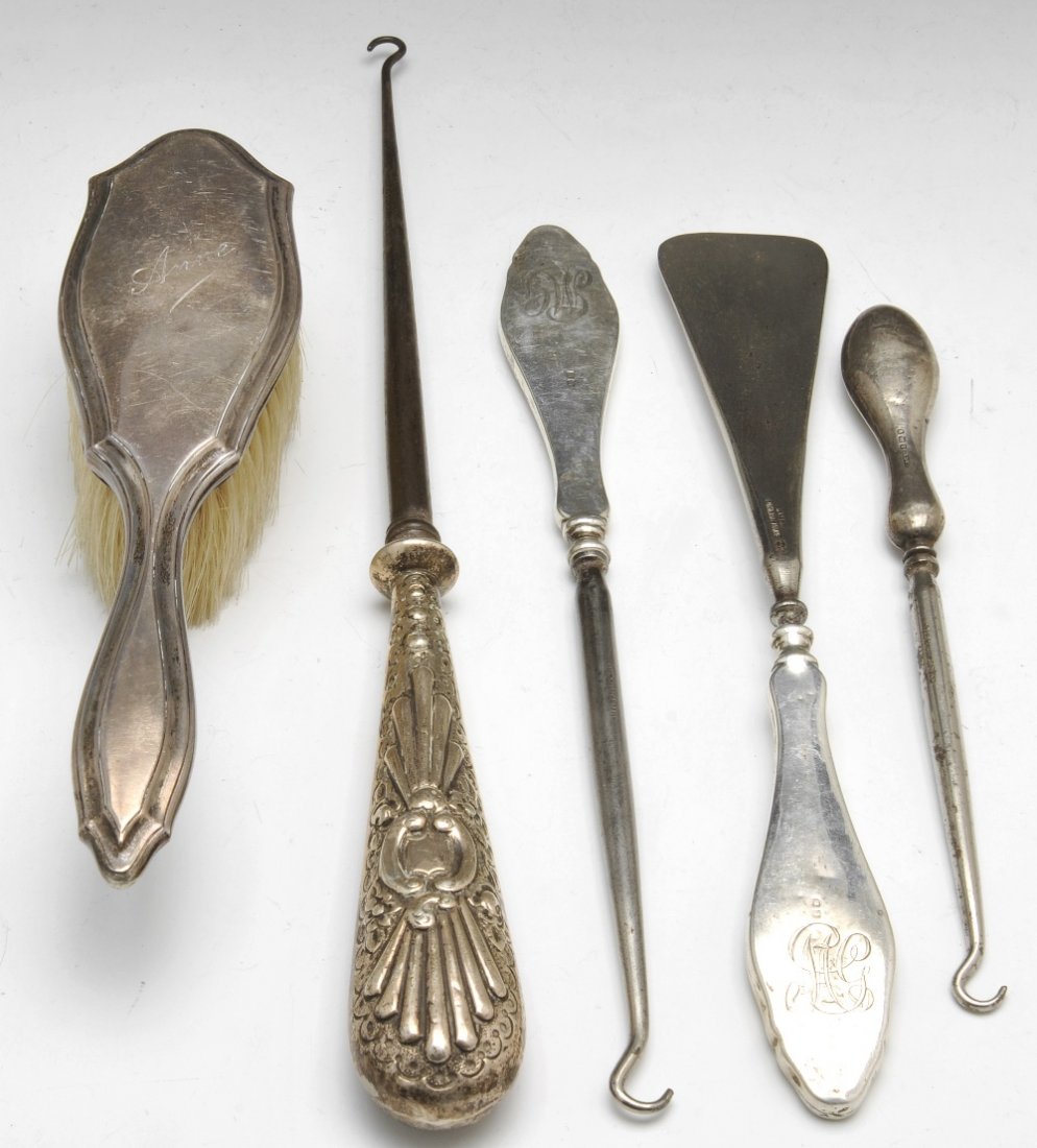 Victorian silver handled boot hook, a boot hook &