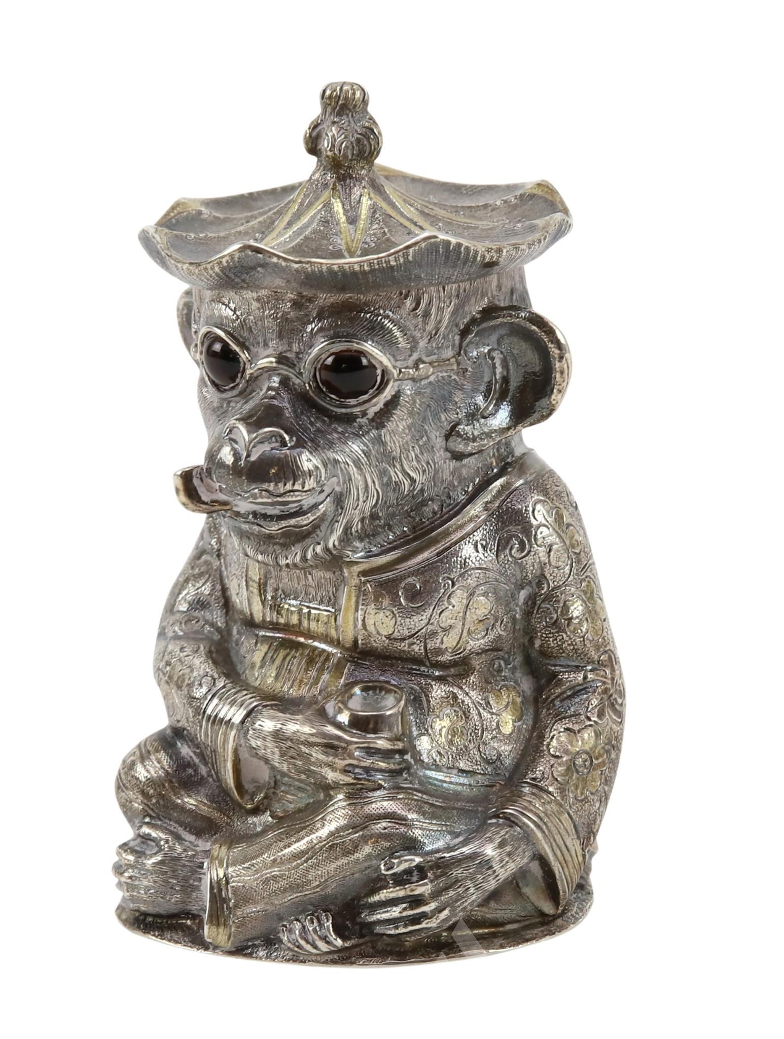 Victorian Silver Monkey Mustard Pot