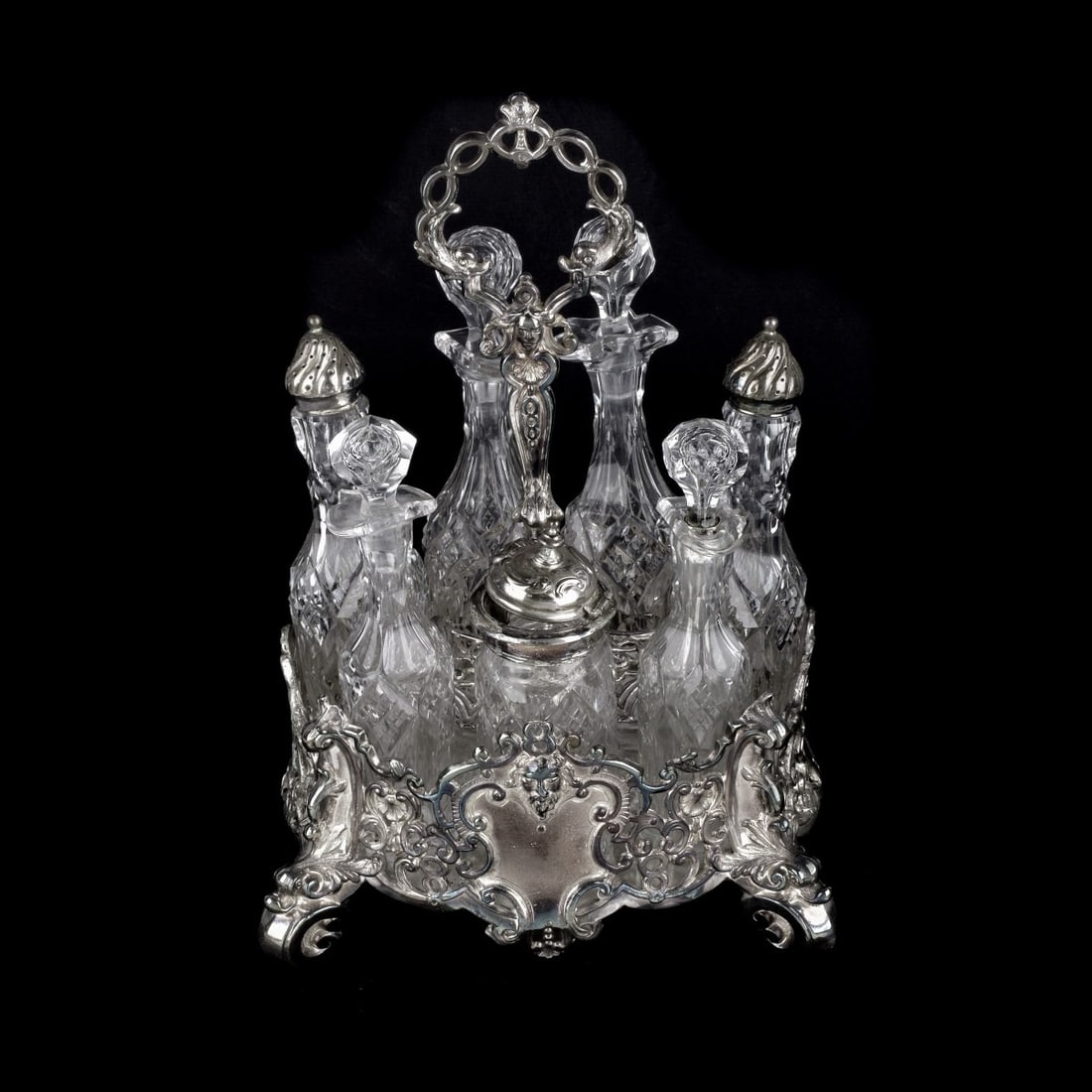 Victorian Era Cruet Set, Silver-Plate Serving Tray2 days LeftPuiforcat (Hermes) 2pc. Louis XVI Covered 950 Sterling Silver Vegetable Server / Tureen - Like New !English cruet set, 19th century, consisting of a richly chiseled holder with two cut glass bottlesFeb 15, 2026VICTORIAN SILVER PLATE AND CUT GLASS CRUET SET.Feb 19, 2026Silverplate Cruet Set With Bell & Glass Bottles5 days LeftA British Cut Crystal & Silver Plated Cruet Set, 19th C5 days LeftVictorian Silver Plate and Glass Cruet Stand1 day LeftDECANTER STAND WITH BOTTLES & STERLING LABELSFeb 20, 2026Paul STORR - GEORGE III SILVER & CUT GLASS CRUET SET1 day LeftA VICTORIAN SILVER RECTANGULAR CRUET STANDFeb 17, 2026A FANCY ENGLISH SILVERPLATE TANTALUSFeb 22, 2026A GEORGE III SILVER WARWICK CRUETFeb 17, 2026A 19TH CENTURY SILVER CRUET BOTTLE STANDFeb 17, 2026White Star Line Art Deco Crystal & Silver Plate Cruet SetMar 15, 2026Antique English Victorian Silver-Plated InkwellFeb 18, 2026Victorian Silver Plate and Cut Glass Cruet SetFeb 15, 2026