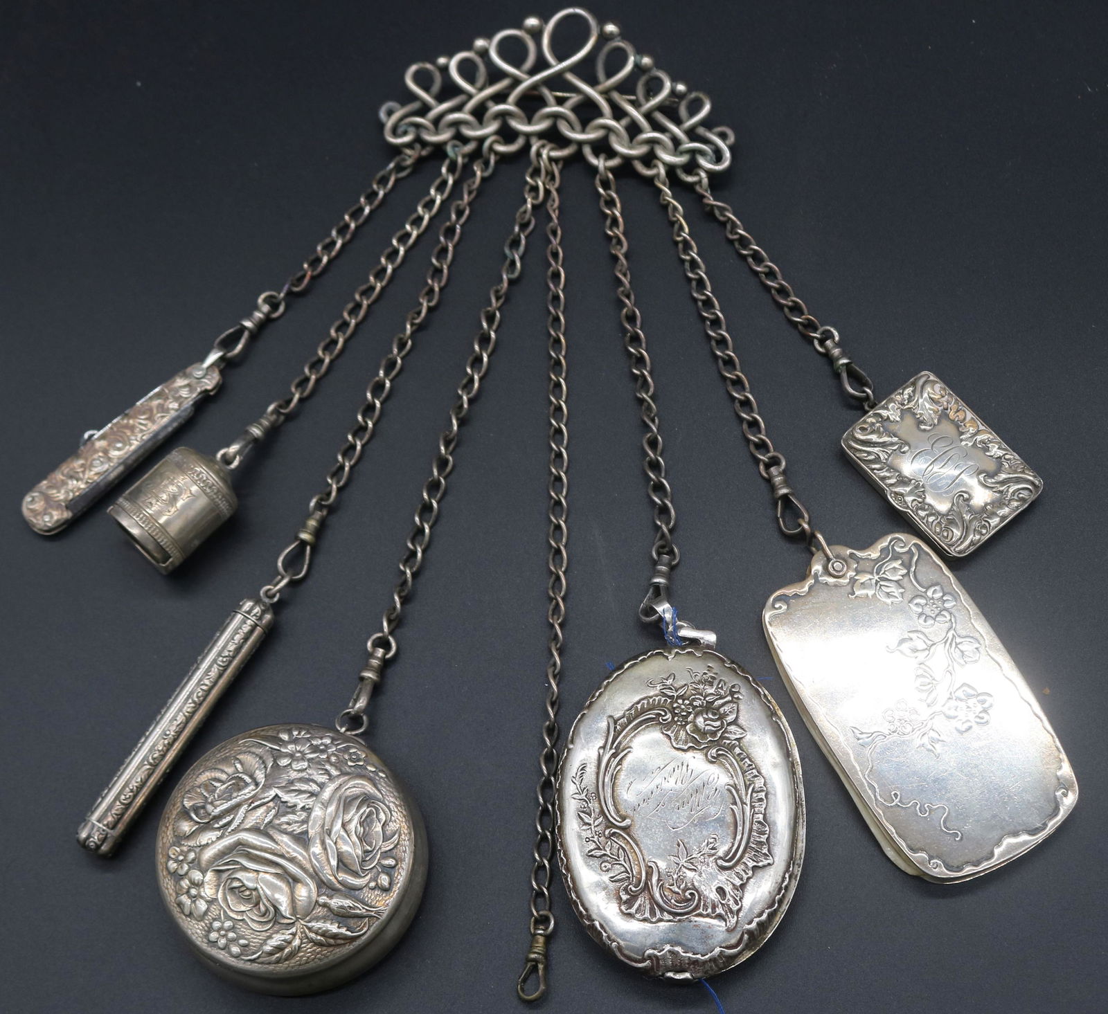VICTORIAN STERLING & PLATED CHATELAINE, UNDER