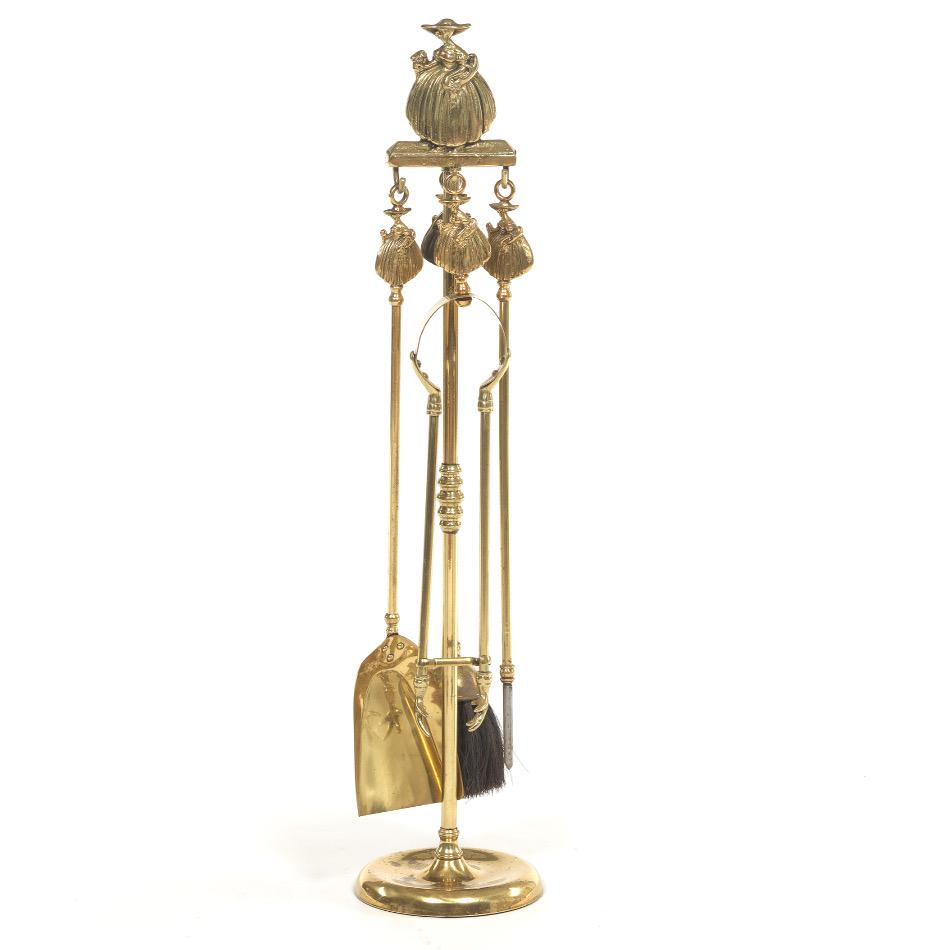 Victorian Style Brass Five-Piece Fireplace Tools,
