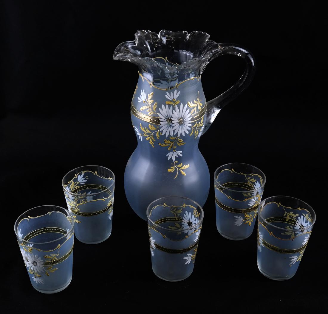 Grp Lot 6 Vintage Glass Tableware Pieces1 day Left1920's White Star Line Estate Lot Carafe Decanter & 8 Glass Cordial Sipping GlassesMar 15, 2026Signed Quezal Art Nouveau Favrile Art Glass Decanter And 4 Cordial Glass SetFeb 28, 2026Vintage Etched Crystal Punch Bowl, Ladle & 12 Glasses9PC WATERFORD CRYSTAL, LISMORE PATTERNMar 07, 2026Vintage (ca. 1960s) 3-Piece Pitcher/Vase Bowl/Relish Dish - Indiana Glass, Anchor Hocking4 days LeftVintage French Crystal Footed Vase Pattern Cluny By Daum, FranceFeb 16, 2026Bohemian White Floral Amber Glass Cordial Set5 days LeftVintage Hungarian Smoked Topaz Gilt Decanter Set of 6Feb 28, 2026(5) Piece Bohemian Cut to Clear Crystal Decanter Cordial SetMar 15, 2026VENETIAN GLASS ENAMELED CORDIAL SETFeb 24, 2026(7PC) BOHEMIAN ETCHED GLASS JUG AND TUMBLERS SET3 days LeftCobalt Blue Pitcher and Cups Iced Tea/ Water Set (7)Mar 07, 2026C. 1896 VICTORIAN WESTMORELAND SHELL & JEWEL WATER SET3 days LeftHobbs EAPG Amber Water Pitcher and Tumbler1 day LeftVintage Amber Controlled Bubble Art Glass Pitcher & Goblet Set6 days Left