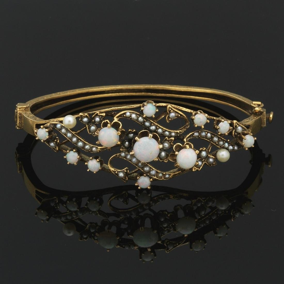 Vintage 14k Gold Bangle With Opal Cabochons and Seed Pearls Floral MotifMynt Auctions4.4(848)$1001 day Left