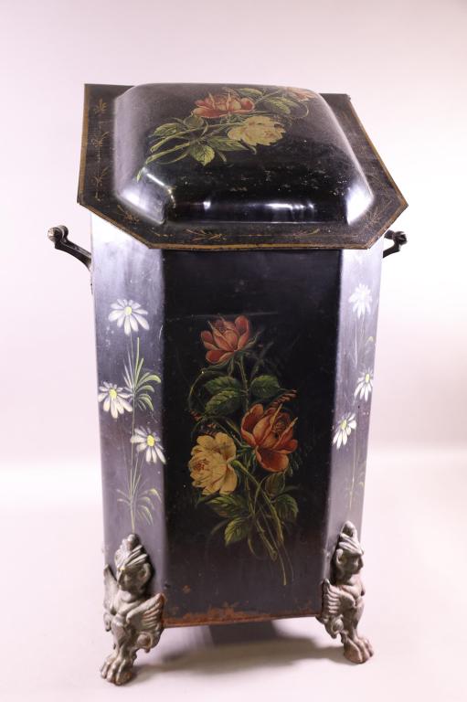 VICTORIAN TOLE PAINTED COAL SCUTTLE