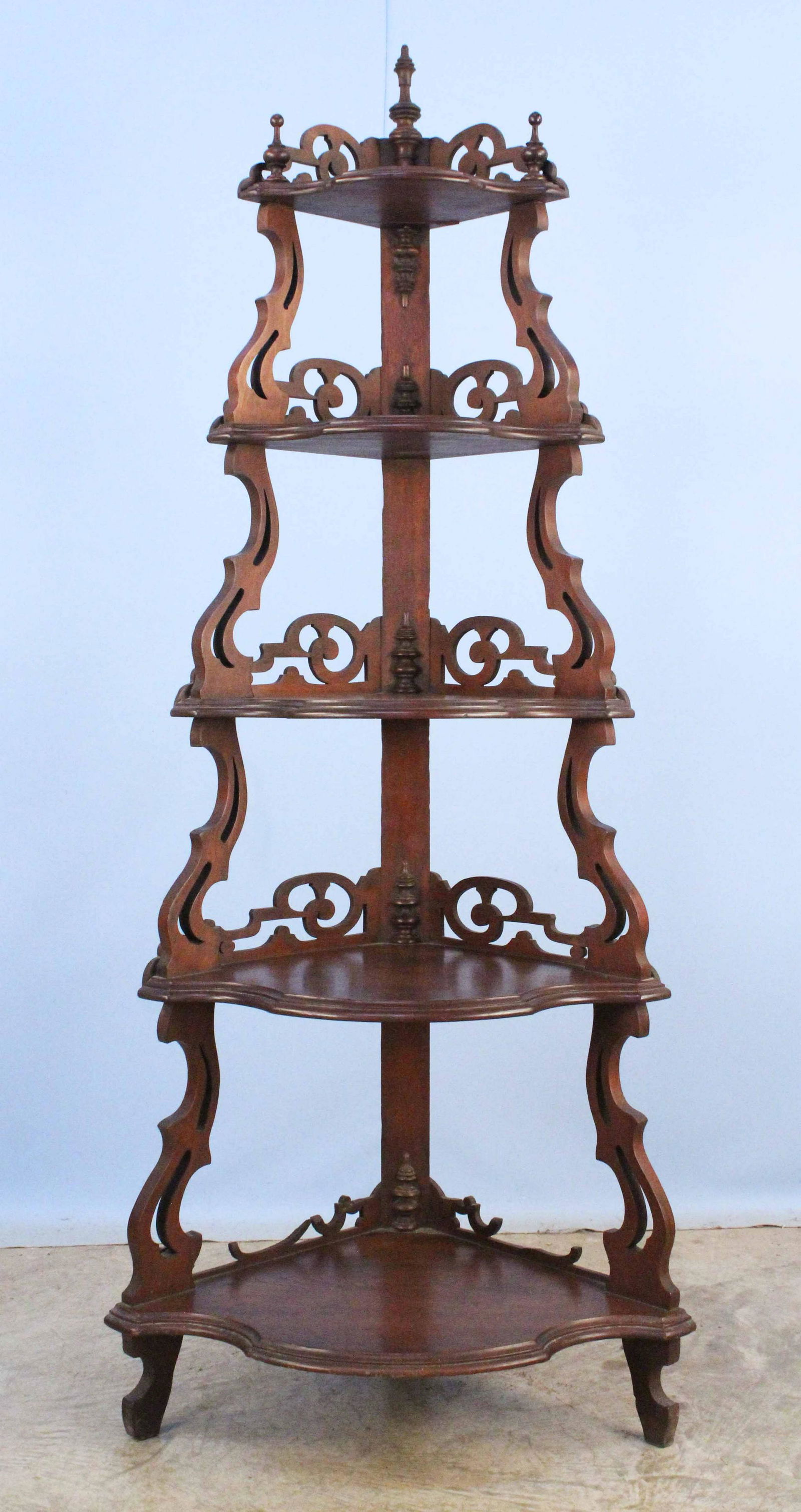 Victorian Walnut Corner Shelf w/ Five Shelves