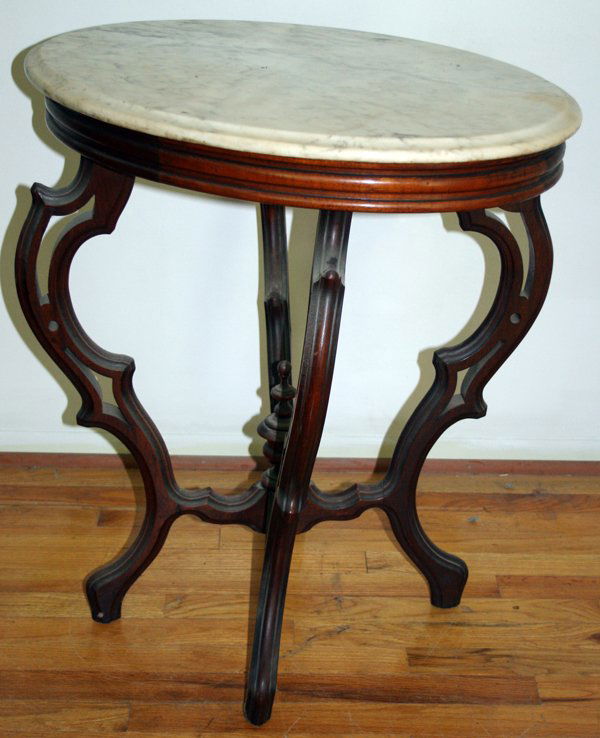 VICTORIAN WALNUT PARLOR TABLE, MARBLE TOP,