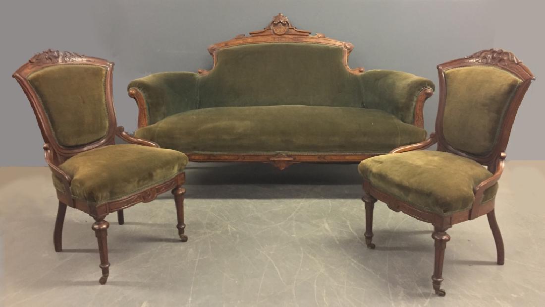 Victorian Walnut Settee with Matching Side Chairs
