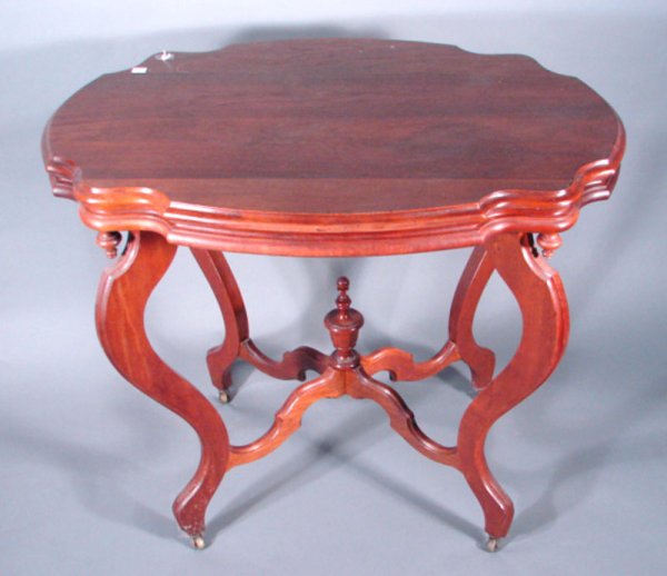 Victorian Walnut Turtle Top Parlor Table. Minor stai