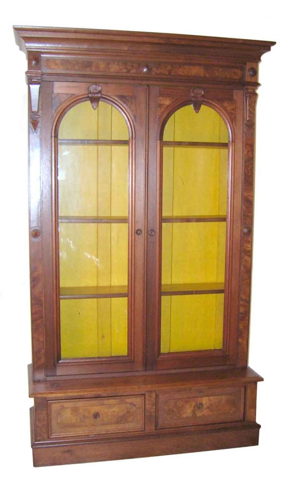 Victorian Walnut Two Door Stepback Bookcase Circa