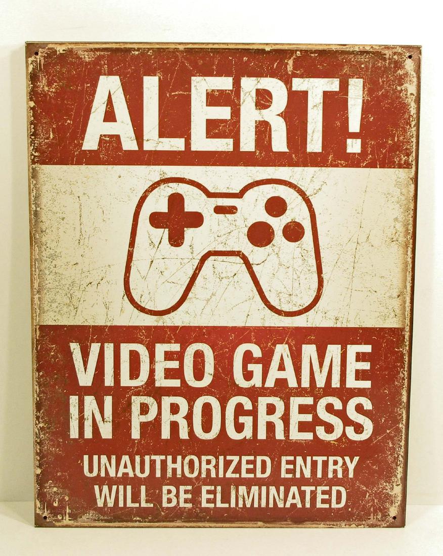 VIDEO GAME IN PROGRESS ALERT METAL SIGN