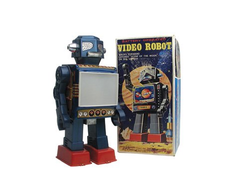 SoldBATTERY OPERATED VIDEO ROBOTBATTERY OPERATED VIDEO ROBOT. "WALKS FORWARD. CATCHES "SCENE" OF THE MOON" ON BIG SCREEN. MINT IN BOX. COMPLETE AND INTACT.See Sold Price