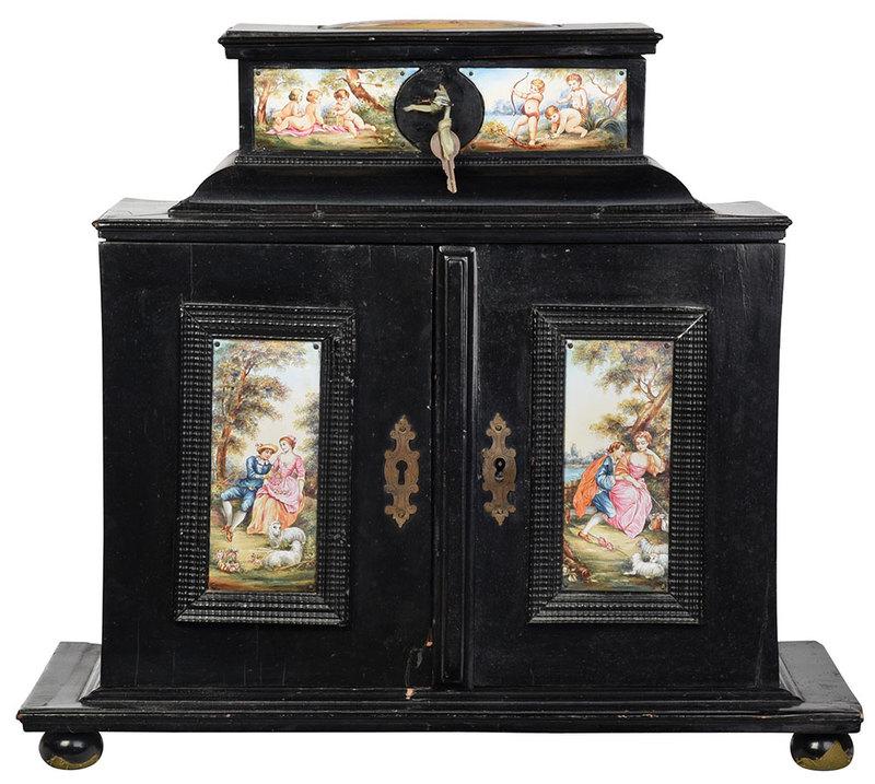 Viennese Enamel and Ebonized Table Cabinet