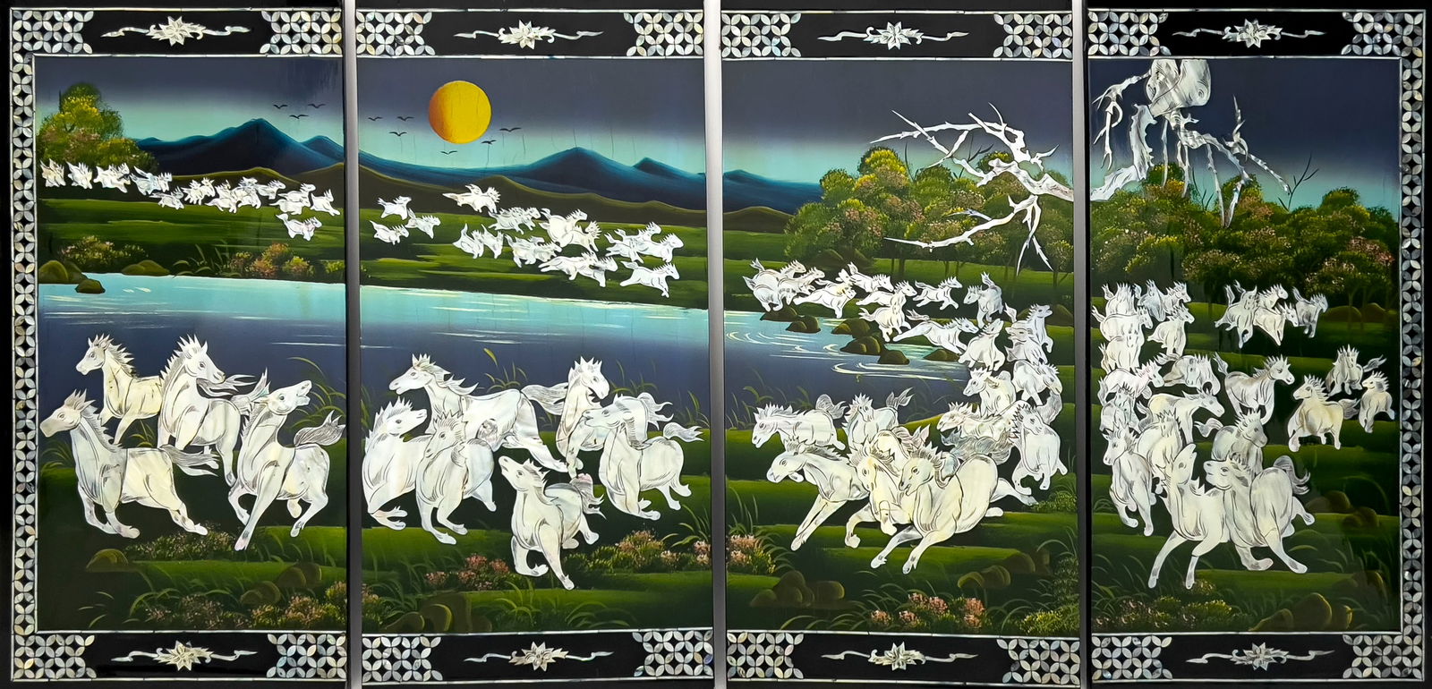 Vietnamese - Four Panel Lacquered Screen
