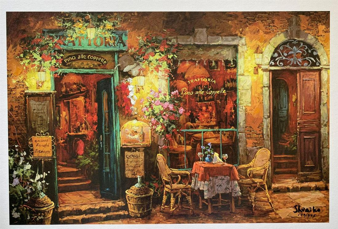 Sam Park- Hand Embellished Serigraph on Paper "Bella Franche"4 days LeftAlexander Borewko- Original Giclee on Canvas "Pedestrian Mall"22 hrs LeftAlexander Borewko- Original Giclee on Canvas "Street Restaurants"4 days LeftAlexander Borewko- Original Giclee on Canvas "Cafe Du Vaudeville"22 hrs LeftAlexander Astahov- Original Giclee on Canvas "Modern Room"22 hrs LeftFilastro Mottola "Portofina Italy" Signed Original Acrylic on Paper3 days LeftViktor Shvaiko, "Il Cibero" Hand Embellished Limited Edition on Canvas, Numbered and Hand SignedMar 05, 2026Viktor Shvaiko, "La Fonda" Hand Embellished Limited Edition on Canvas, Numbered and Hand Signed with6 days LeftViktor Shvaiko, "Via Leccosa (White)" Limited Edition Printer's Proof Serigraph (26" x 46"),4 days LeftViktor Shvaiko, "Plaza Del Correo Vejo (White)" Limited Edition Printer's Proof Serigraph (30" x22 hrs LeftViktor Shvaiko, "Afternoon Shadows" Limited Edition Printer's Proof Serigraph (34" x 40"), NumberedMar 05, 2026Viktor Shvaiko, "Afternoon Shadows" Limited Edition Printer's Proof Serigraph (34" x 40"), Numbered22 hrs LeftViktor Shvaiko, "Via Leccosa (White)" Limited Edition Printer's Proof Serigraph (26" x 46"),22 hrs LeftViktor Shvaiko, "Au Petit Marquis" Limited Edition Printer's Proof Serigraph (28" x 42"), NumberedMar 05, 2026Viktor Shvaiko, "La Feniere" Limited Edition Printer's Proof Serigraph (36" x 27"), Numbered and4 days LeftViktor Shvaiko, "Windows of Italy" Hand Embellished Limited Edition Printer's Proof on Canvas,6 days Left