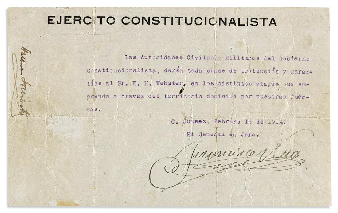 VILLA, FRANCISCO ("PANCHO"). Typed Document Signed, a