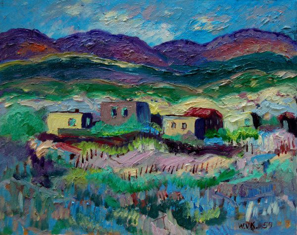 SoldHerman Zuker (1959-) Polish American, "Mountainside Village" Acrylic on Canvas Painting. Circa 1995Herman Zuker (1959-) Polish American, "Mountainside Village" Acrylic on Canvas Painting. Circa 1995. Size: 24 x 20 outside of frame: 25 x 21See Sold Price