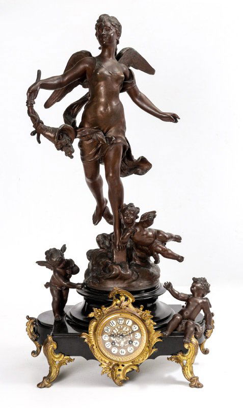 A large and French antique gilt bronze Empire style figural mantel clockOstantix Auctions4.4(13)€5002 days Left