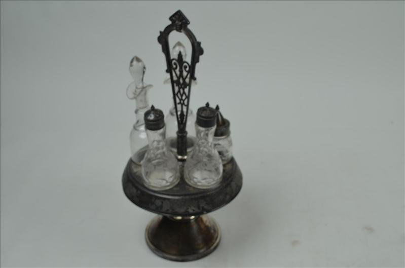 Antique Silver Plated Cruet Condiment Set w/ 5 Glass Bottles. Very Good Condition. See pics.Crawford Family Auctions LLC4.6(196)$20