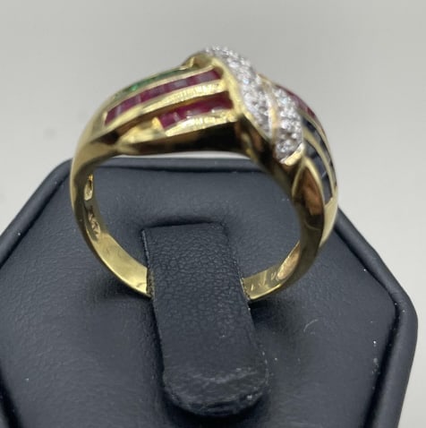 14k Gold 1.81 Ctw Natural Sapphire & Emerald & Diamond Ring