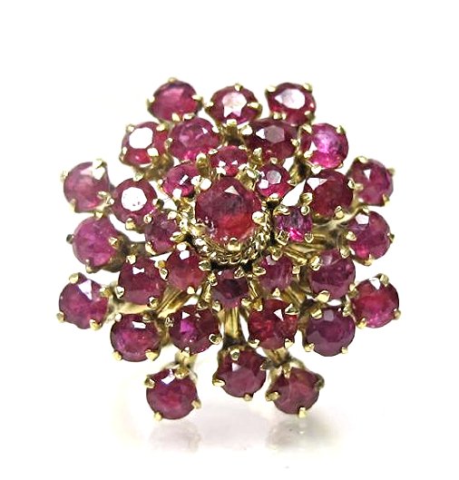 Vintage 14K Yellow Gold Ruby Cluster Ring, Size 6 3/4