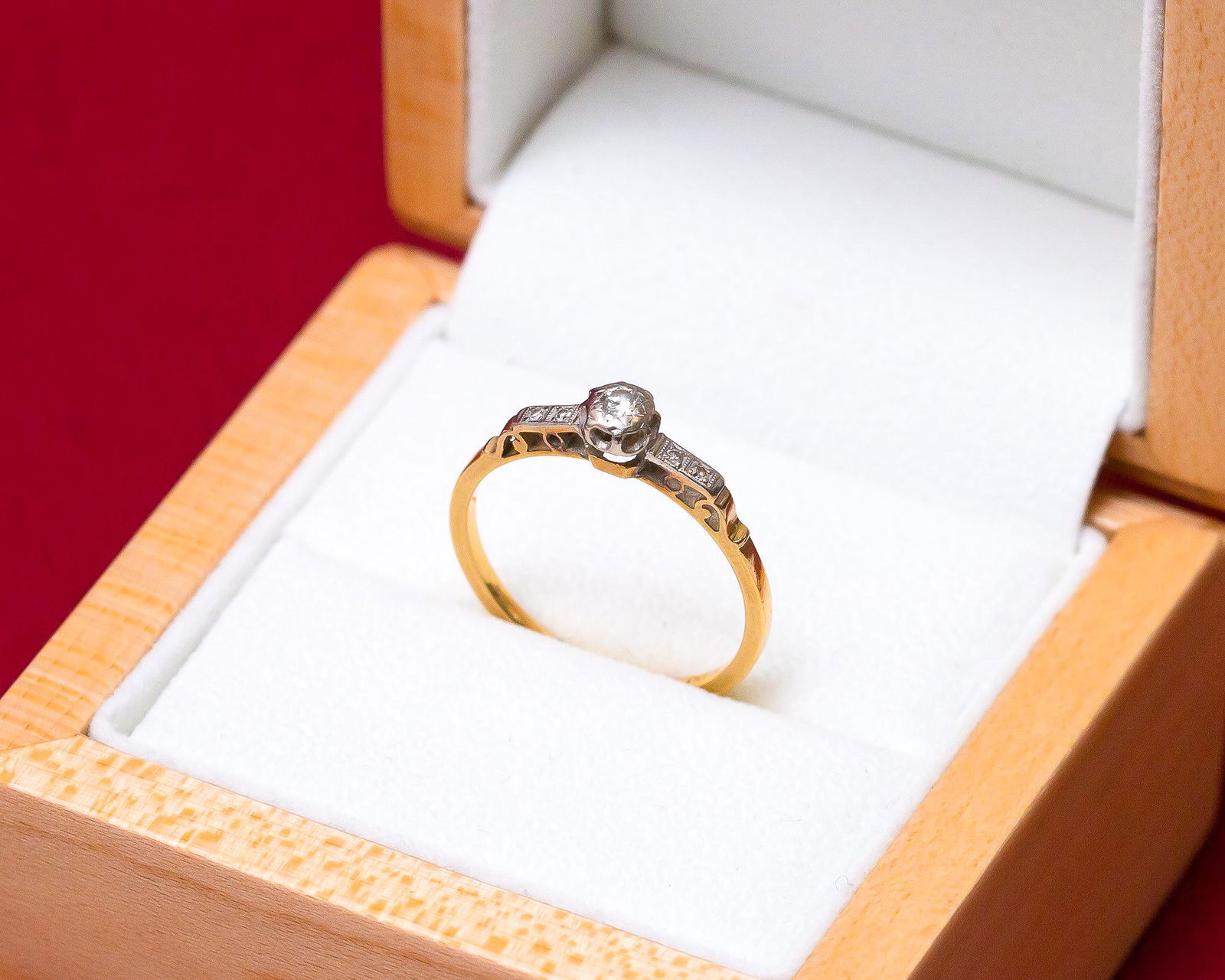 Women's Vintage 14K Gold Platinum Diamond Ring