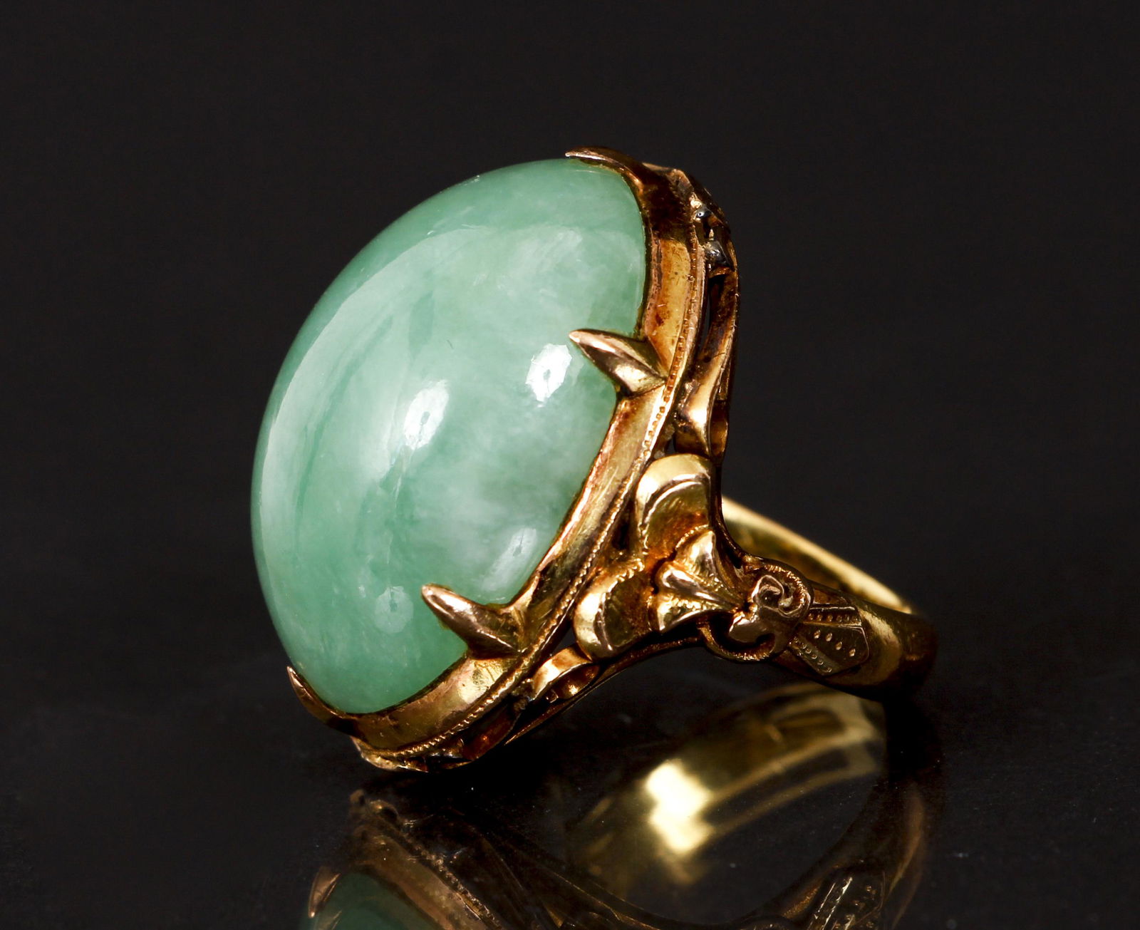 18K Yellow Gold Oval Jade 0.70 Ct H SI2 Diamond Ring 10.8 Grams Size 7Activity Auctions4.4(395)$2,7502 days Left