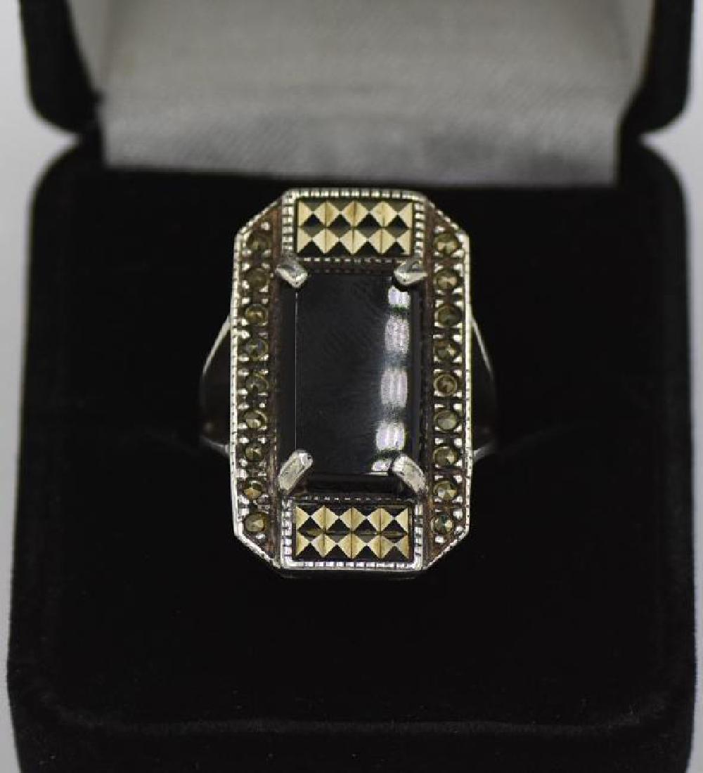 Vintage 925 Silver, Onyx, Marcasite Ring