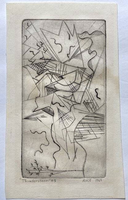 Vintage Abstract Etching Signed Rice 1969