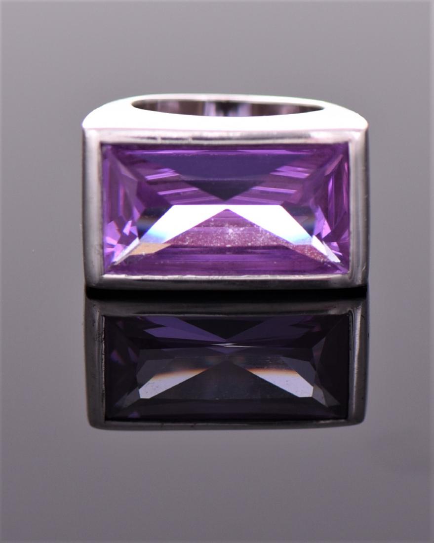 Sz8/9g Sterling Silver Faceted Amethyst Statement Ring