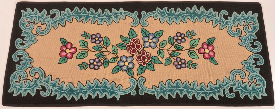 Vintage Amish Floral Pattern Hooked Rug.