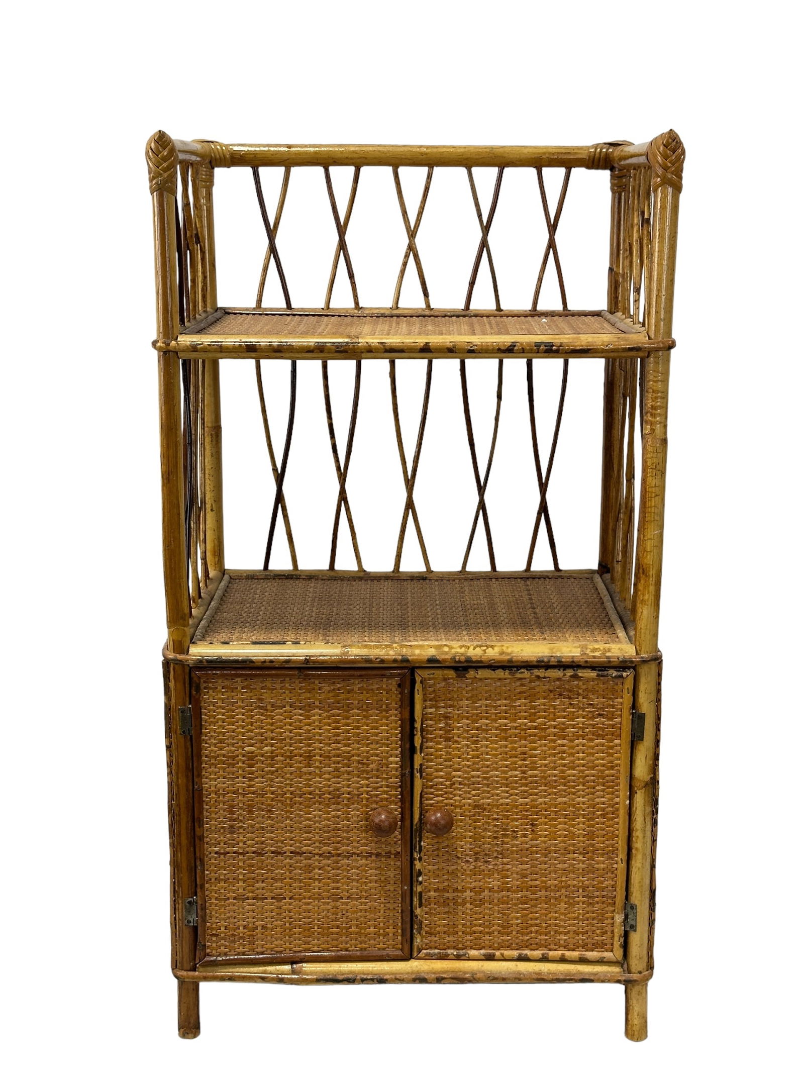 Restored Stacked Two-Tier Rattan Corner Side Table