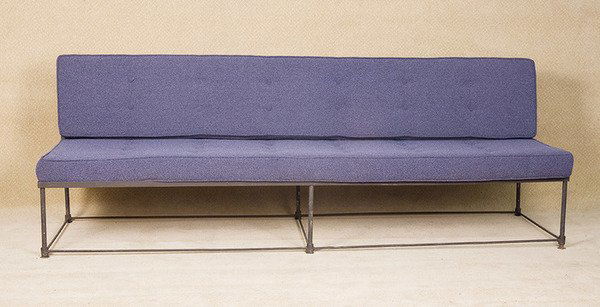 Vintage Black Wire Frame Sofa Bench with Blue cus
