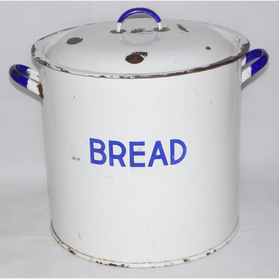 Vintage Blue and White Enamel Bread Bin