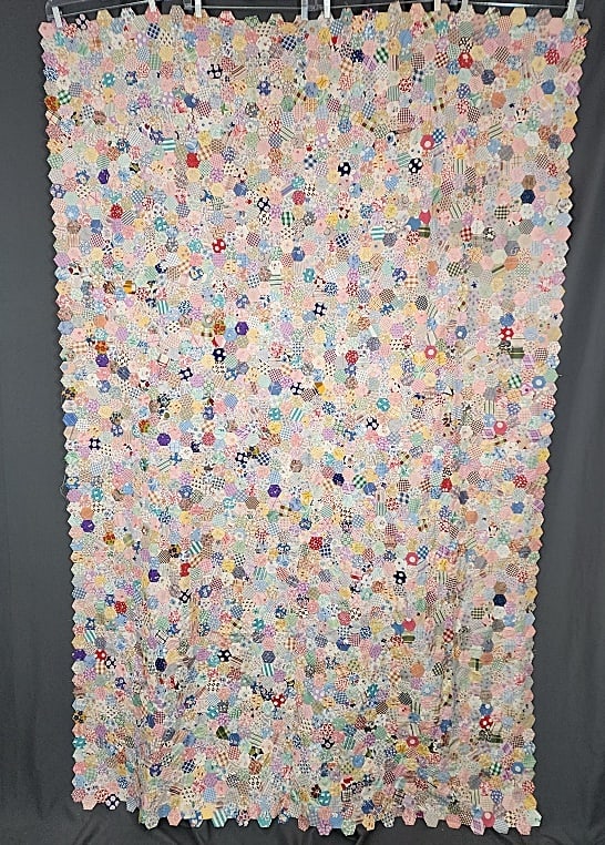 Vintage c1930 Mosaic Hexagon Quilt Top